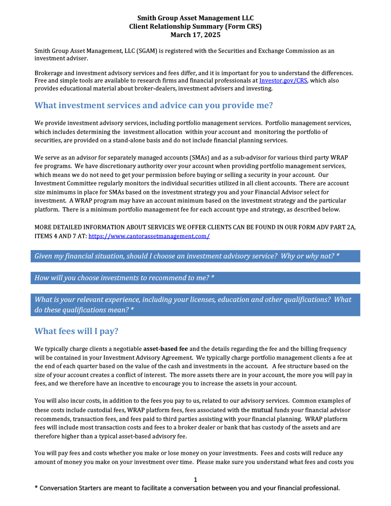 SMITH ASSET GROUP BROCHURE SMITH ASSET GROUP ADV DOCUMENT CLICK TO DOWNLOAD PDF SMITH ASSET GROUP BROCHURE CLICK TO DOWNLOAD SMITH ASSET GROUP ADV DOCUMENT